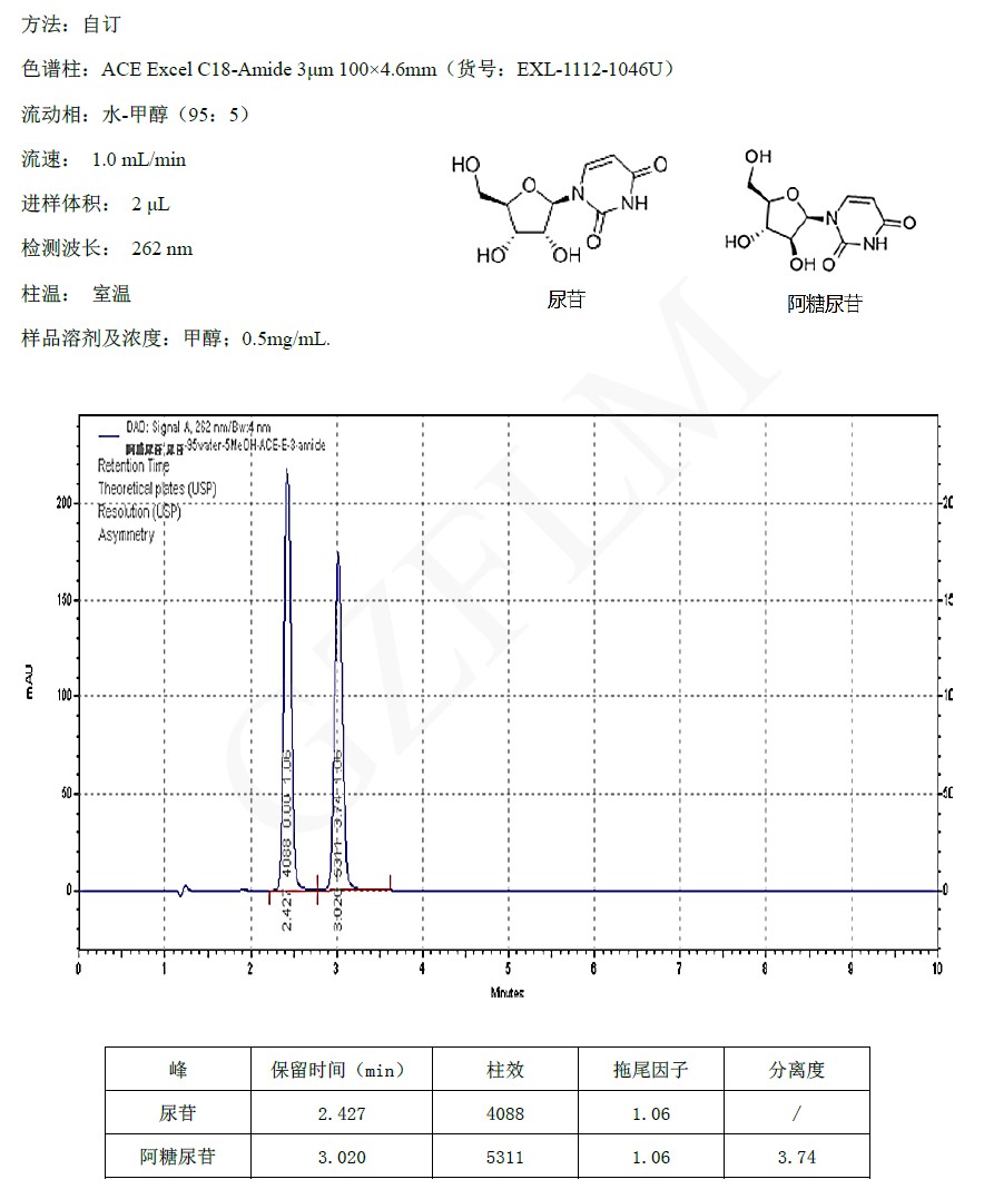 色譜柱:ACE Excel C18-Amide 3μ 100 X 4.6 mm