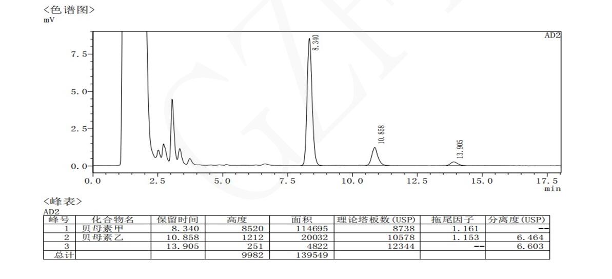 菲羅門液相色譜柱對(duì)浙貝母中貝母素甲與貝母素乙的檢測