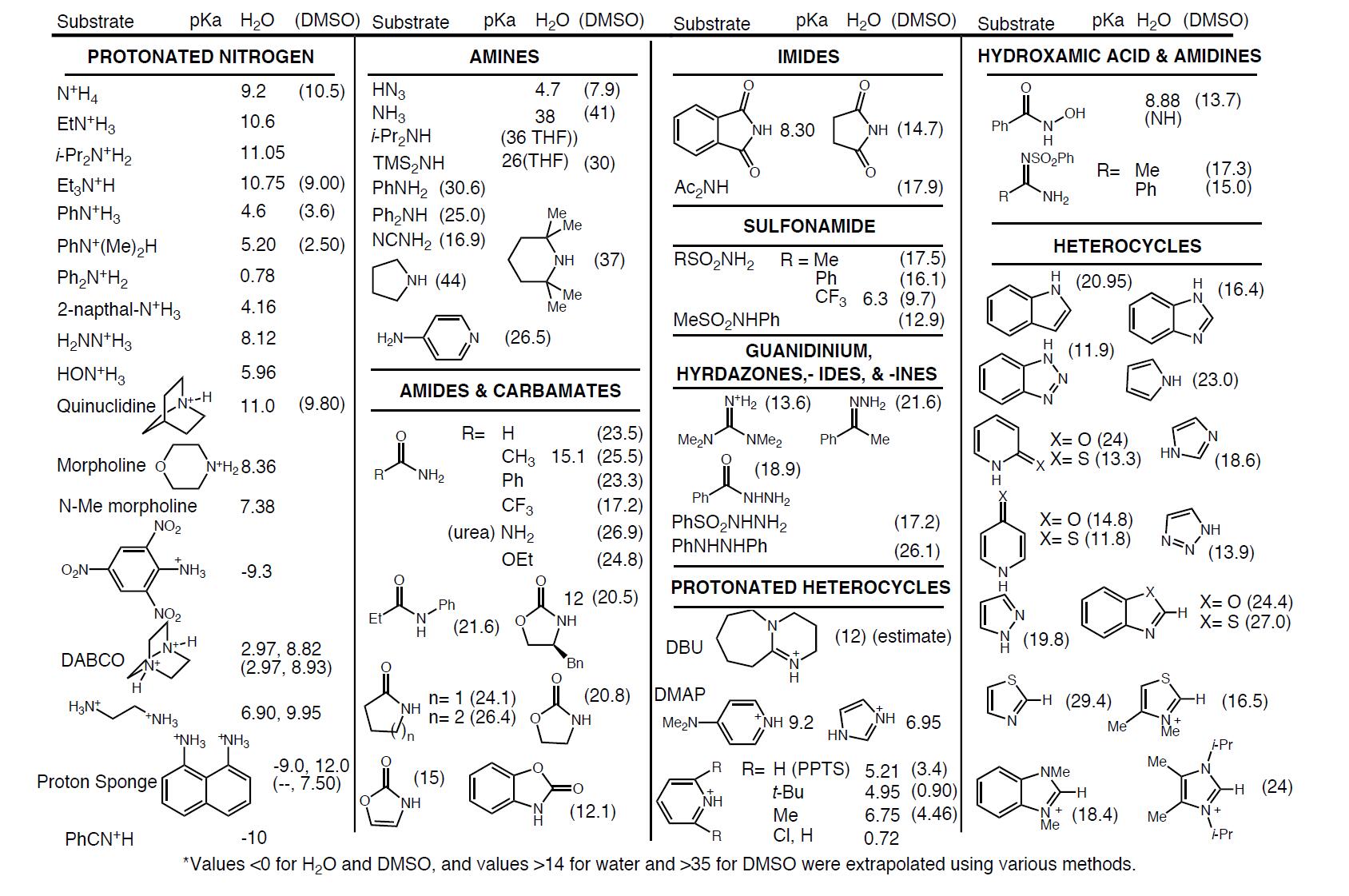 本文推薦哈佛大學 David Evans制作的化合物的pKa表, 包括以下化合物的pKa。
