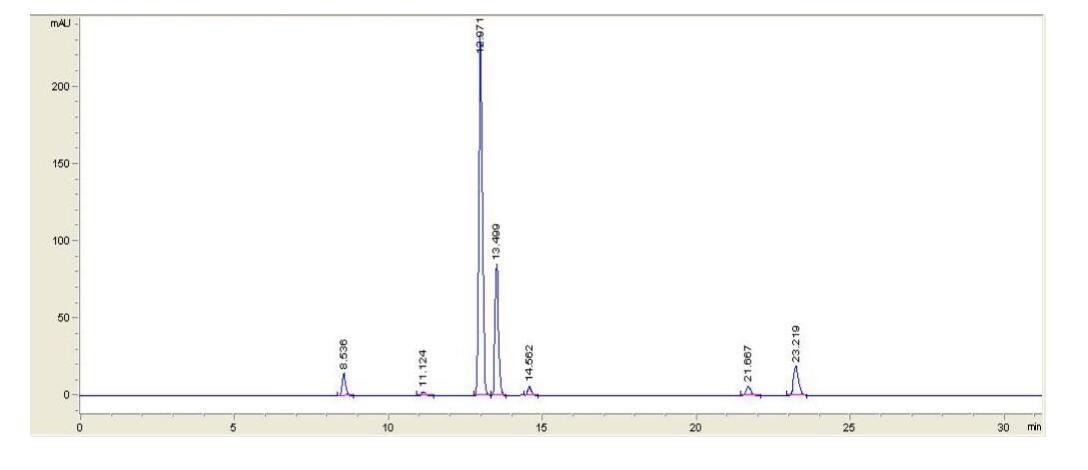 色譜柱:菲羅門 SuperLu C18(2) 5u 250*4.6mm(貨號:FMG-5292-EONU) 流動相:A:20 mmol/L 乙酸銨溶液 B:甲醇