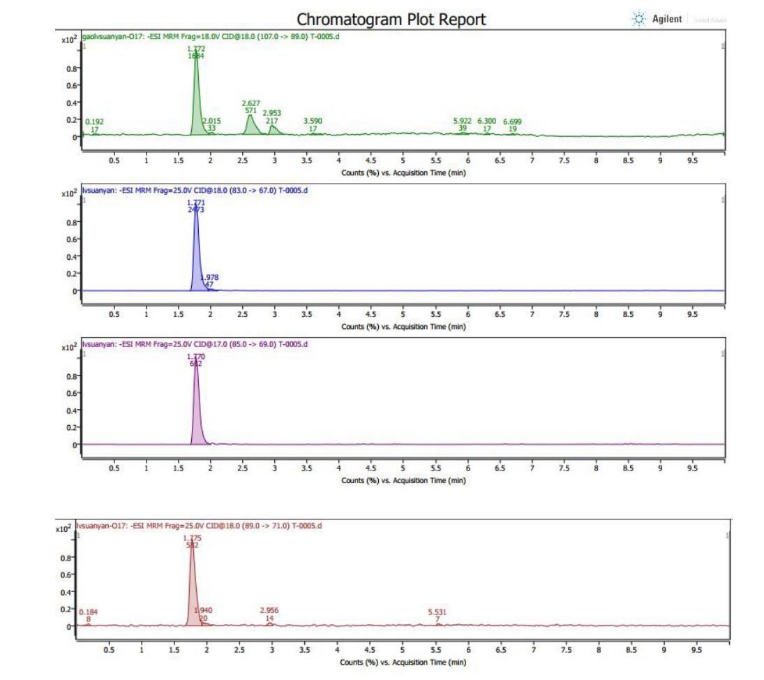 液質聯用方法:與 GB 5009.291-202 標準中,5.4.1 中的流動相一致,5.4.2 的質譜條件一致。