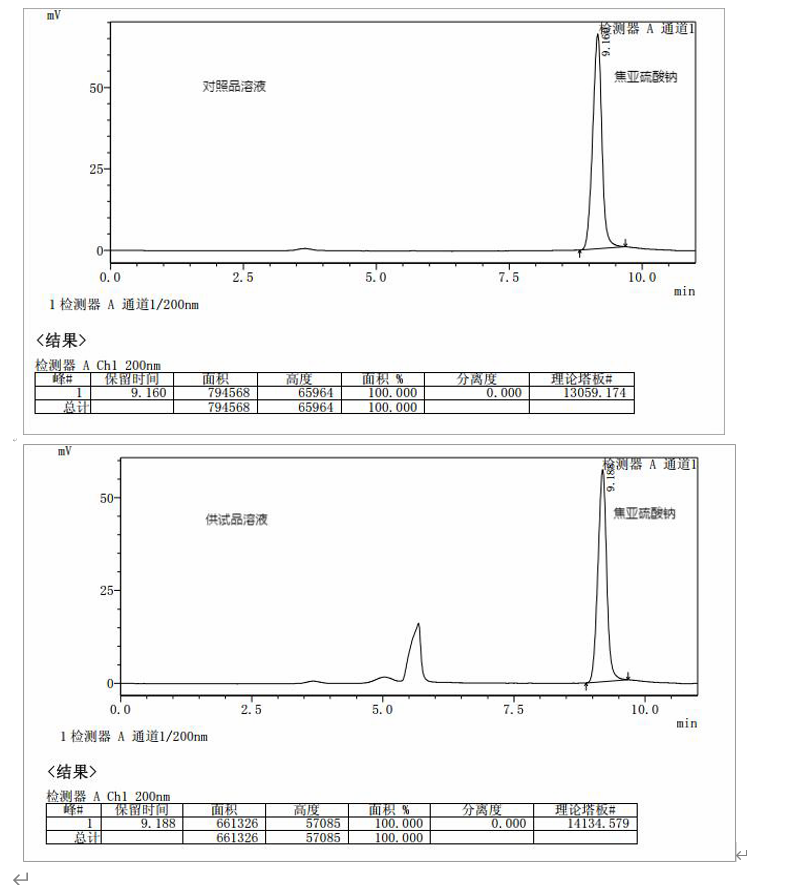 App ID: FLM-M240003 MARS MOA 柱對焦亞硫酸鈉的檢測 色譜柱:MARS MOA 10um 300*7.8mm (貨號:MH-1138-KONU) 流速:0.7 mL/min 檢測:uv200nm 進樣量:20ul 柱溫:50°C 流動相:4mmol/L 磷酸溶液-乙腈(85:15) 供試品:精密量取硫酸阿米卡星注射液 1ml,置 20ml 量瓶中,用流動相稀釋至刻度,搖勻