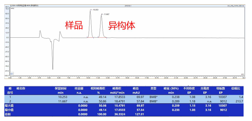 綜上所述,使用菲羅門手性柱對烏帕替尼中間體進行手性拆分是一個復(fù)雜但重要的過程。通過選擇合適的色譜柱、配置適當(dāng)?shù)牧鲃酉?、進行專業(yè)的操作和數(shù)據(jù)分析,可以確保拆分過程的順利進行和拆分后得到的對映體的質(zhì)量。 |