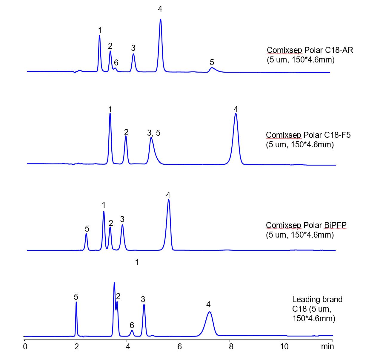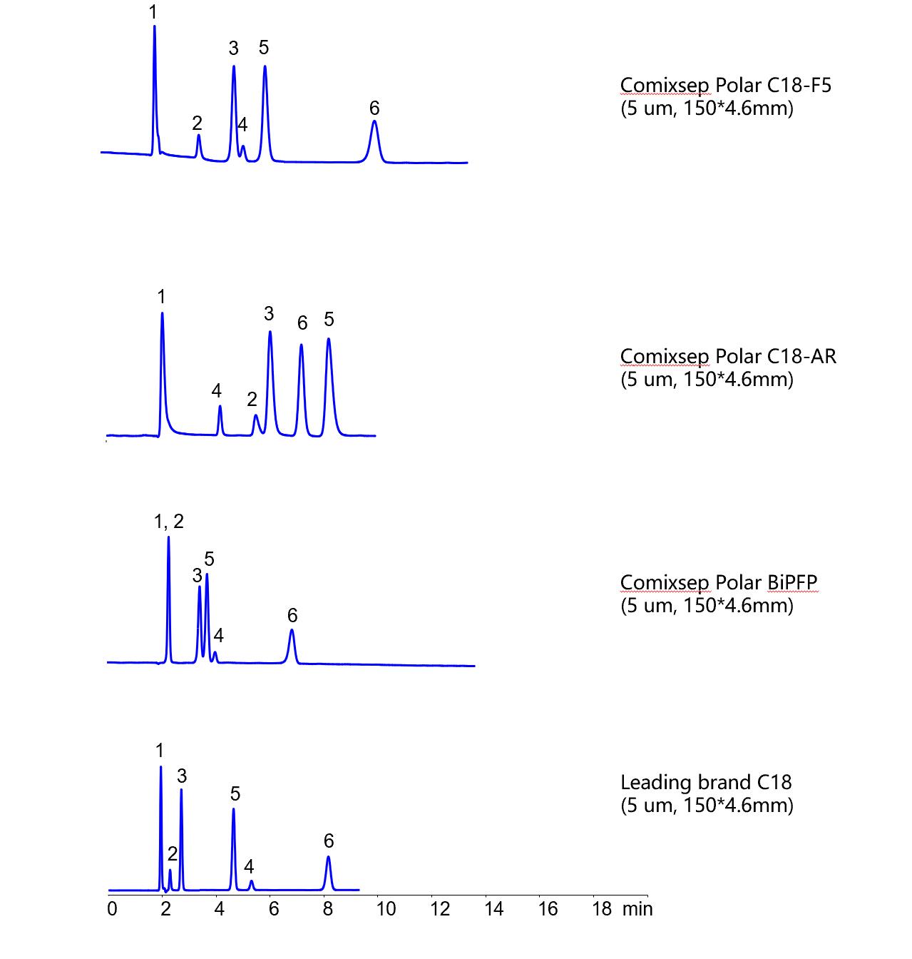 Comixsep復合反相固定相方法包為三款規格一致的互補固定相(Polar C18-F5, Polar C18-AR和Polar BiPFP)的組合,通過選擇性的科學互補,方便在HPLC方法開發時固定相的篩選,最大化提升方法開發的效率和成功率,是HPLC方法開發的有力工具。