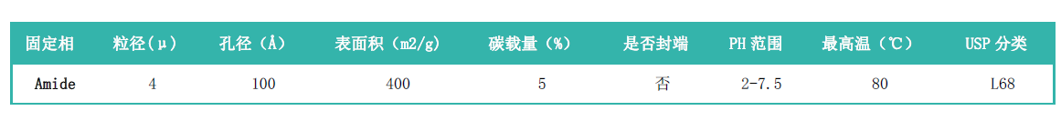 此固定相推薦用于反相(RP)與水性反相(ANP)模式,用于極性分子,生物分子如糖,多糖,多肽或蛋白酶等。
