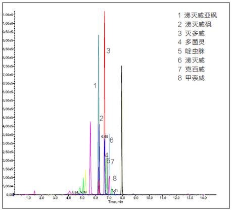 圖 2 添加水平為 0.05mg/kg 黃瓜中氨基甲酸酯類農藥多殘留檢測色譜圖
