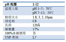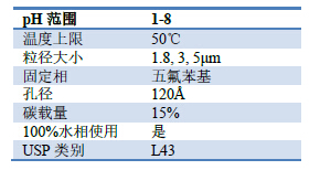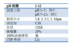 • 具有與常規色譜柱同樣標準的疏水性和親水性的良好平衡,避免市售 C18 雜化硅膠柱表現出的保留降低的問題