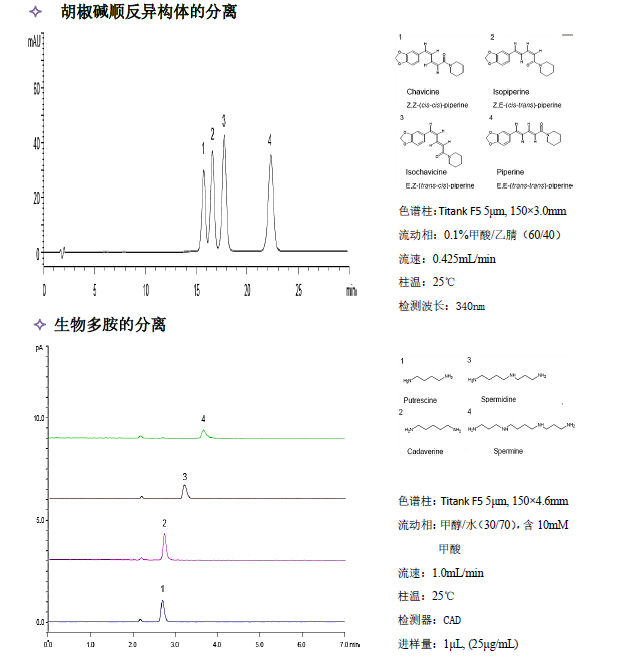 上圖顯示,對易于引起吸附、拖尾及易產生再現性問題的堿性化合物和配位化合物,Titank 系列能獲得穩定的重現性。