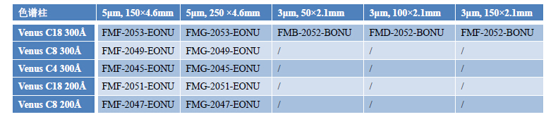Venus 系列反相色譜柱以超純硅膠為基質(zhì),采用特殊的化學(xué)鍵合技術(shù),形成單層ODS,使