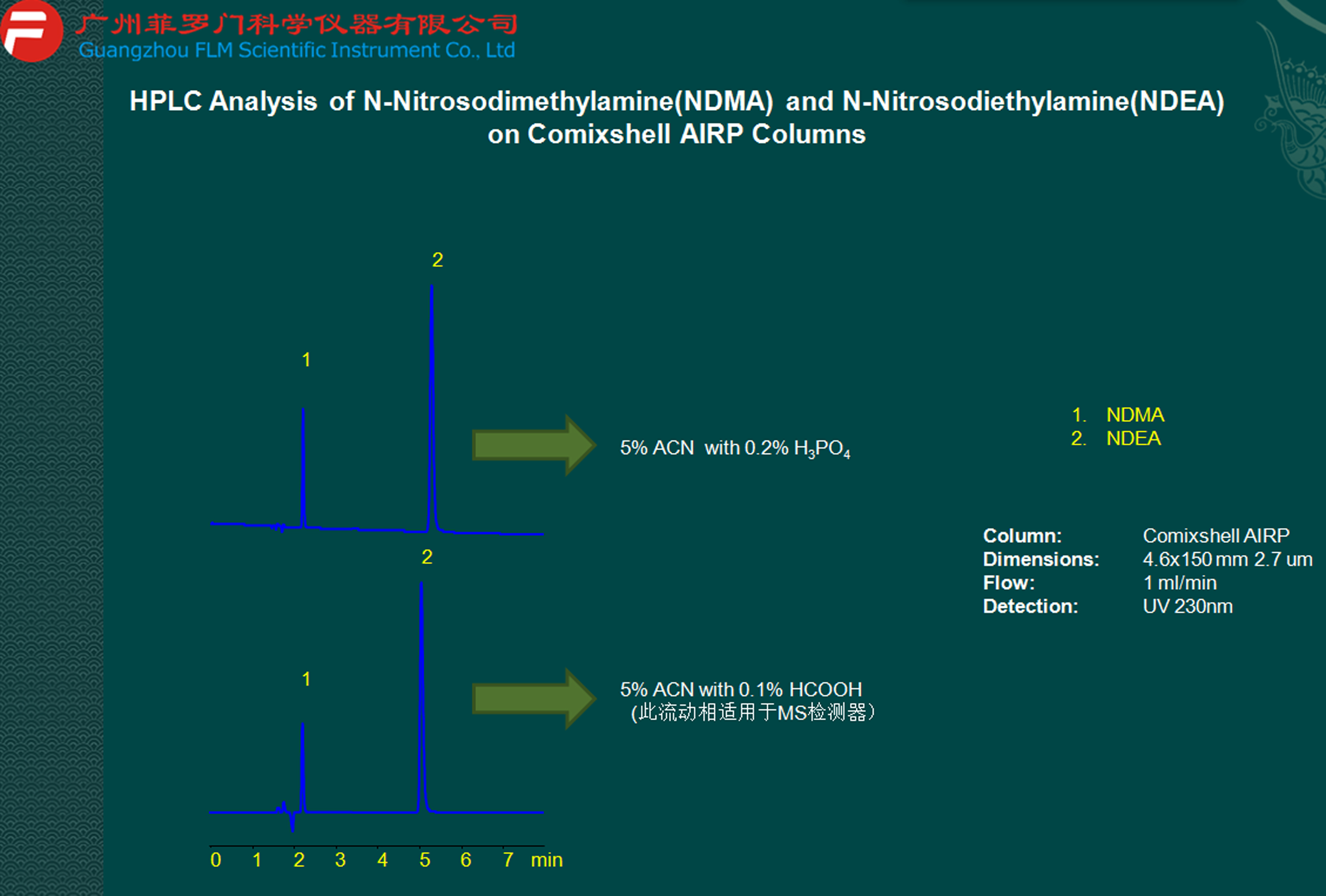 NDMA和NDEA檢測(cè)(基因毒性和元素雜質(zhì)相關(guān)應(yīng)用圖譜)菲羅門液相柱