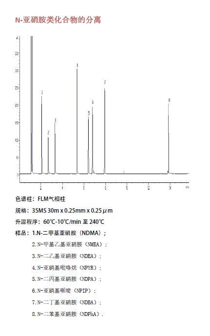N-亞硝酸銨類(lèi)化合物的分離(基因毒性和元素雜質(zhì)相關(guān)應(yīng)用圖譜)菲羅門(mén)氣相柱