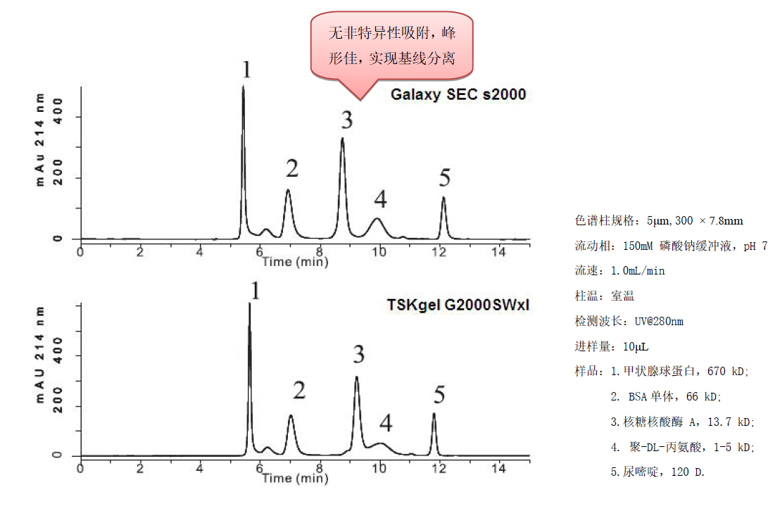 Galaxy SEC 對(duì)比TSKgel SEC 的分離效果: