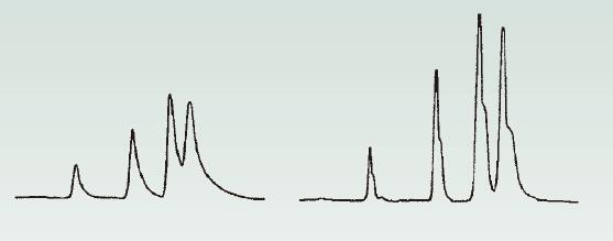 如果僅部分解析兩個峰形(兩個峰僅有部分分開),則可能會認(rèn)為其是裂峰或雙峰。如圖4顯示的情形。